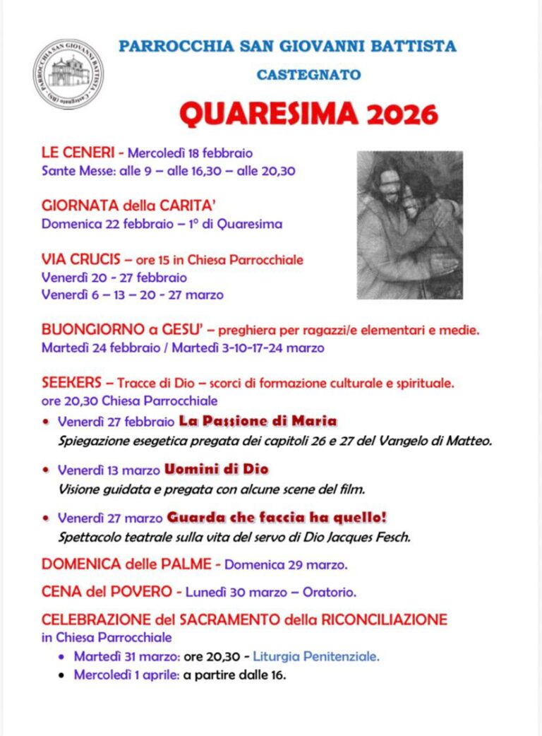 feriali: ore 18.00 (in caso di funerale la messa sarà sospesa)