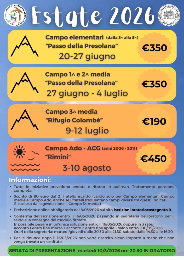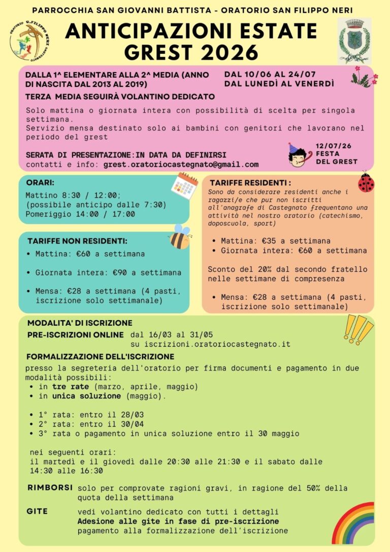 domenica e feste: ore 8.00 – 10.30 – 18.00